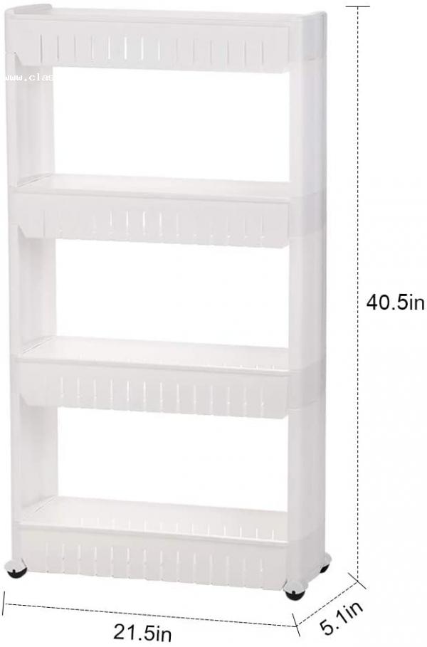 Diseño deslizante: portátil con ruedas para sacar y empujar fácilmente. Utiliza esas zonas estrechas para almacenamiento en cocina, dormitorio, sala de estar, lavadero, etc. 4 niveles con ruedas que ruedan suavemente, se mueven fácilmente durante la limpieza.