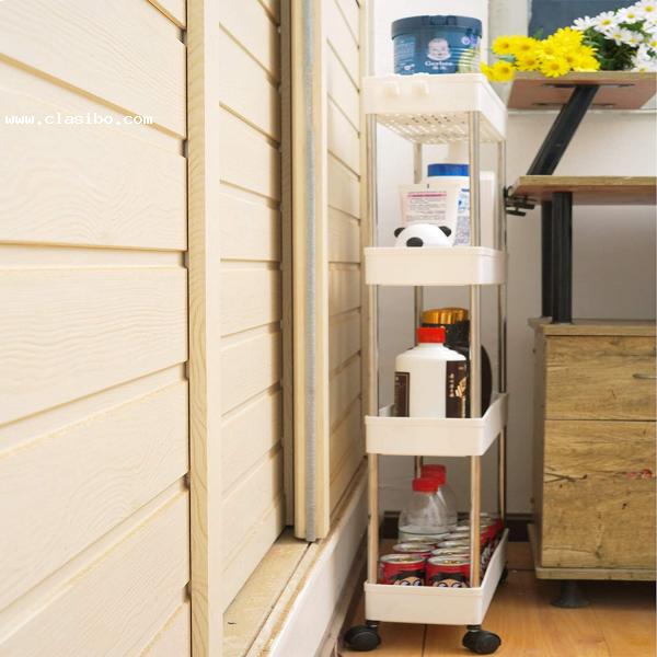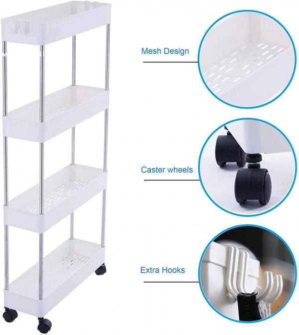 Carro de almacenamiento delgado de 4 niveles, carro móvil estrecho con ruedas, convenientemente deslizable organizador estante carro para cocina cuarto de baño despensa lavandería espacio estrecho - plástico